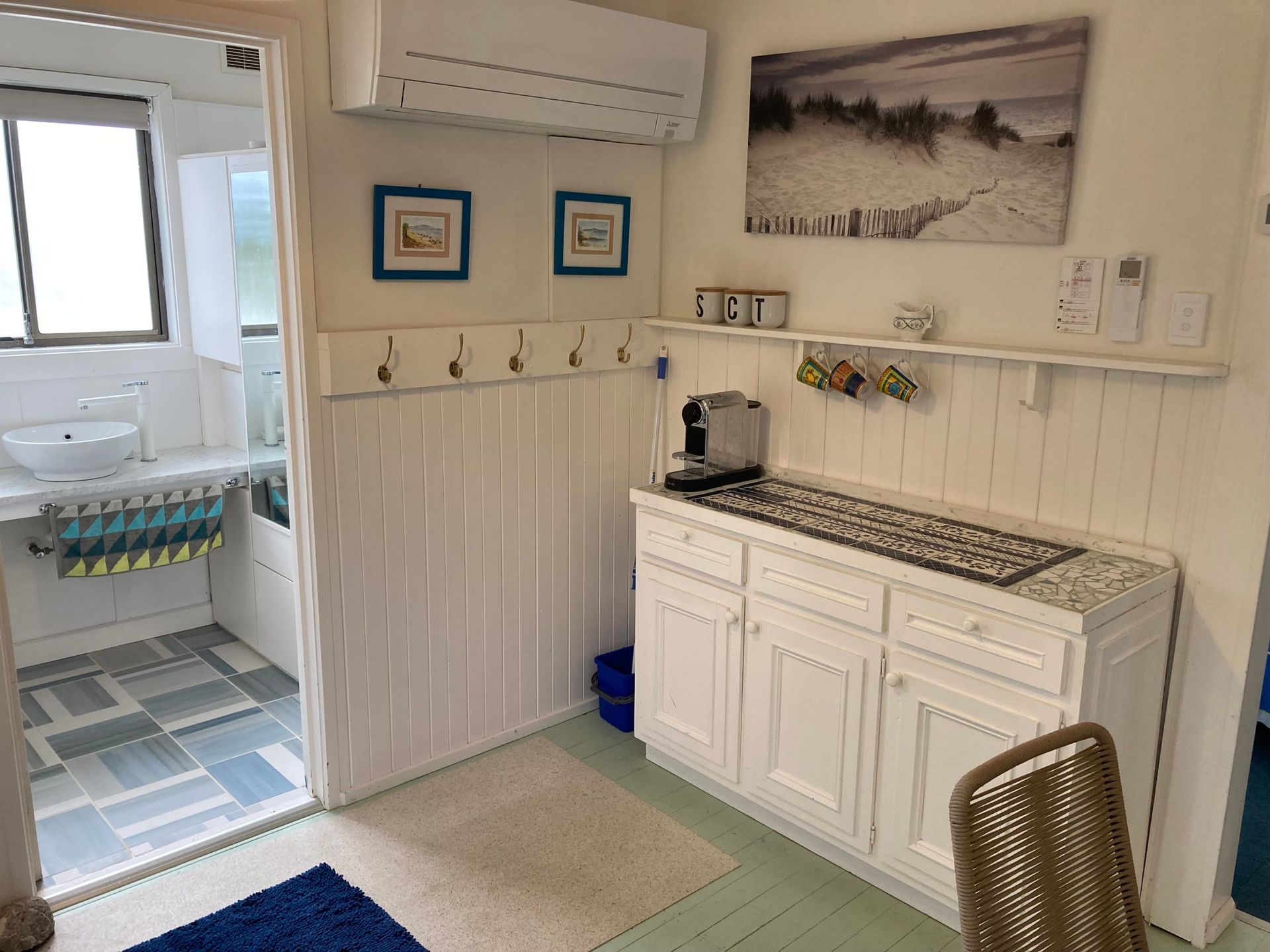 There’s one bathroom and a full laundry with a washer and dryer for convenience.