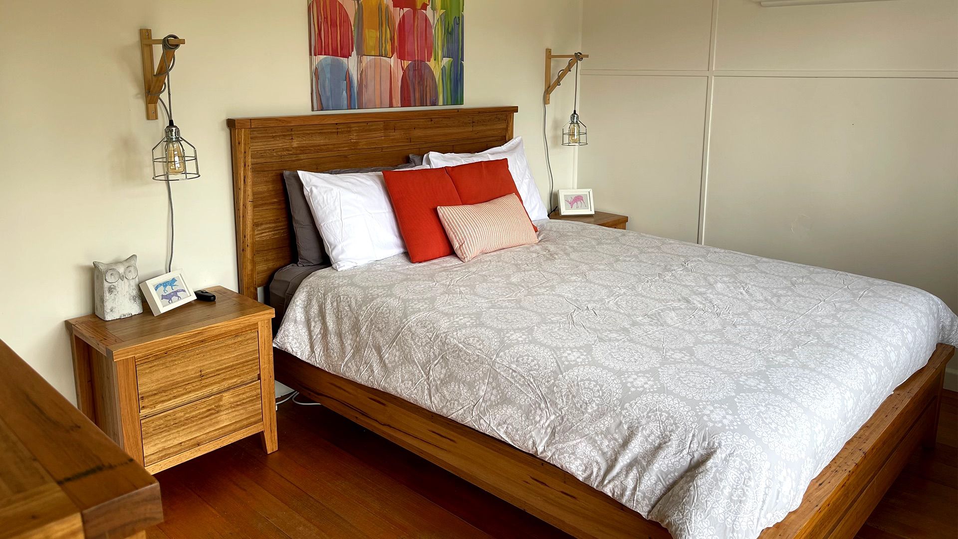 The home comfortably sleeps up to seven guests across three bedrooms. The First and second bedrooms both feature queen beds, while the third bedroom has a double bed with a single bunk, making it ideal for kids or extra guests.