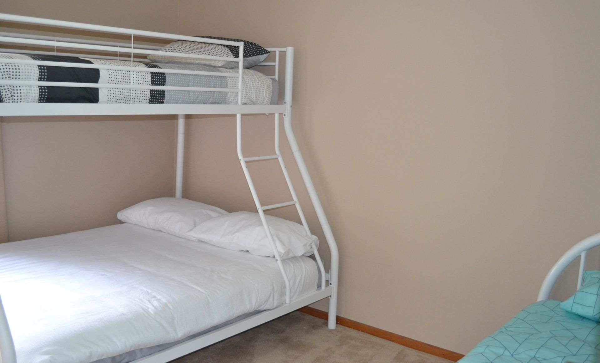 The beds in bedroom are tri-bunks, with a single on top and a double on the bottom. There is also an additional single bed in bedrooms 1 & 2.